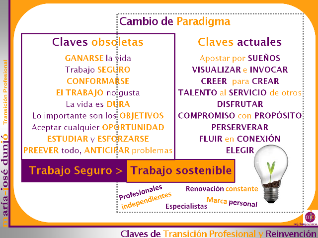 Os incluyo a continuación, algunas claves de ese «El cambio de paradigma laboral» que hemos experimentado los de nuestra generación y, por lo tanto, algunas de los factores importantes a considerar cuando tenemos intención de subirnos al carro de estos nuevos tiempos.